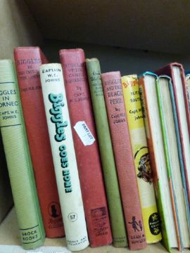 Sundry books including works by Enid Blyton, Captain W E Johns (Biggles), 1919 edition of The memoirs of Sherlock Holmes, several girls' annuals / picture show books