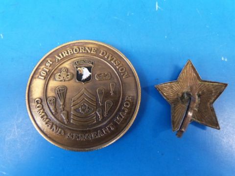 A Russian military cap badge, by repute swapped at Checkpoint Charlie for a Zippo lighter together with a 101st Airborne Division medallion