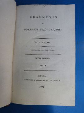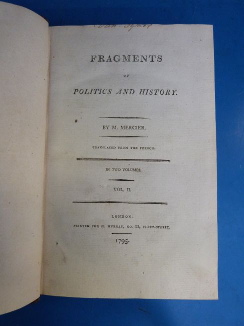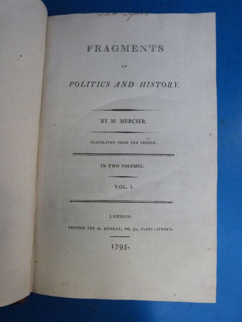 L. S. Mercier, 'Fragments of Politics and History', London, W. Murray (1795), two volumes, leather bound