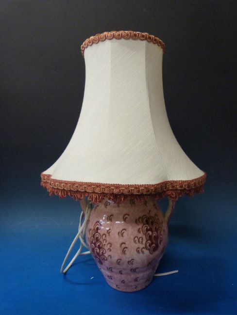 A Bursley Ware Charlotte Rhead twin-handled vase fitted as a table lamp