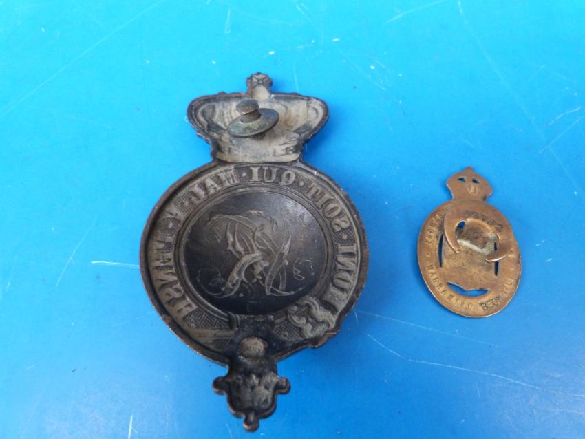 A Victorian martingale badge, together with an 'On War Service 1915' lapel badge