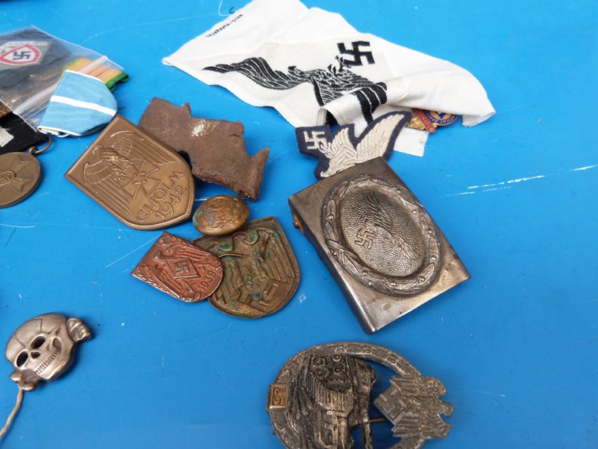 A quantity of original and replica mainly German and American military fabric badges, medals, RAOB medallion, 1928 Hindenburg medal etc