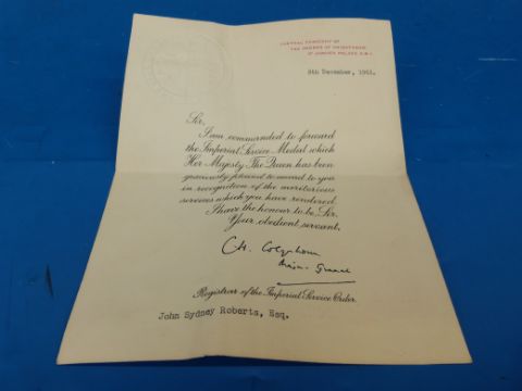 An Elizabeth II Imperial Service Medal awarded to John Sydney Roberts with paperwork and locket including a photograph of the recipient and marked 9ct gold