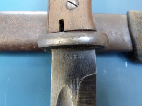 A German bayonet in scabbard, probably WWII, stamped 3193, JJ AND 43 asw
