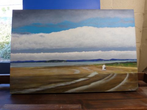 Roy Willis: Acrylic on canvas of Bryher, Isles of Scilly, together with one of Burnham-on-Sea lighthouse and another titled "Us and the Animals"