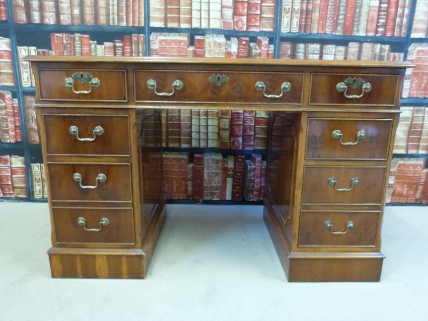A leather inset twin pedestal desk