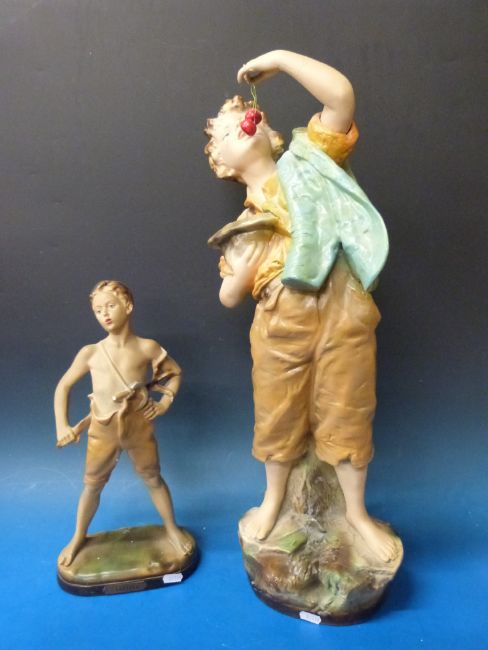 A large chalk figure of a boy eating cherries and one other entitled "Carefree"
