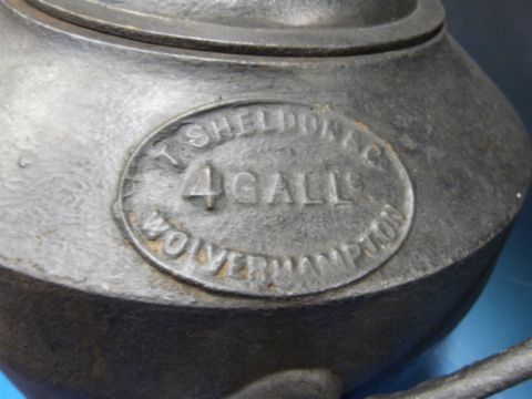 A Victorian four gallon cast iron cooking pot/ hot water container by T.Sheldon and Co Wolverhampton