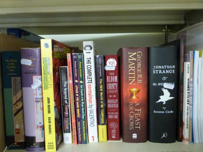 A quantity of comic and similar books to include Bloom County (Volume one), Bone by Jeff Smith, Liberty Meadows, Super Slacktacular University² by Frank Cho, Penny Arcade etc. together with Strange Tails from Liaozhai Studio, The Plum in the Golden Vase, A Feast for Crow etc.