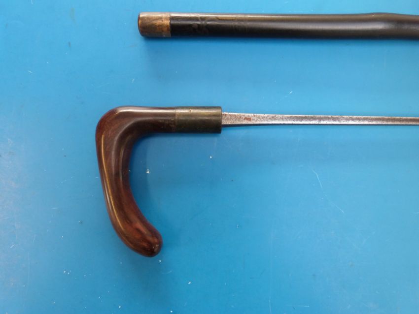 A Wilkinson sword stick with carved handle, stamped to the square tapering section blade "Wilkinson"