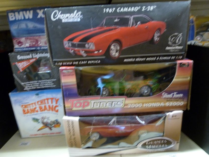 Ten large scale diecast model vehicles by American Muscle Models, Grandes Marques and others to include Greased Lightning, Chitty Chitty Bang Bang etc all in original boxes