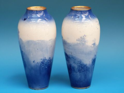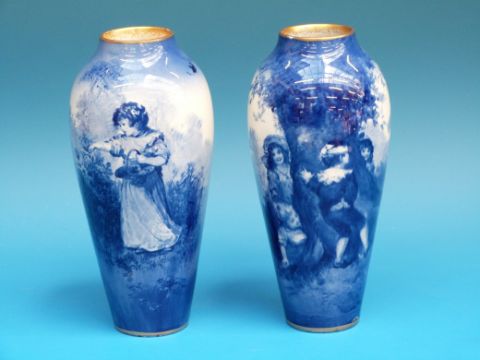 A pair of Royal Doulton "Blue Children" vases (17cm high)