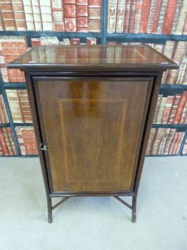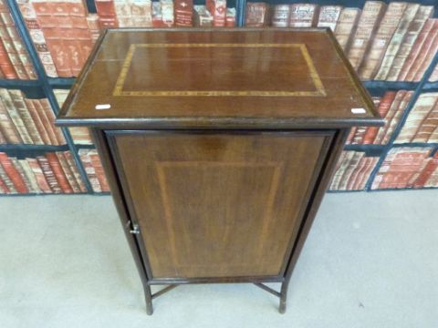 A late 19thC mahogany music cabinet with crossbanded decoration (W59, D39, H94cm)