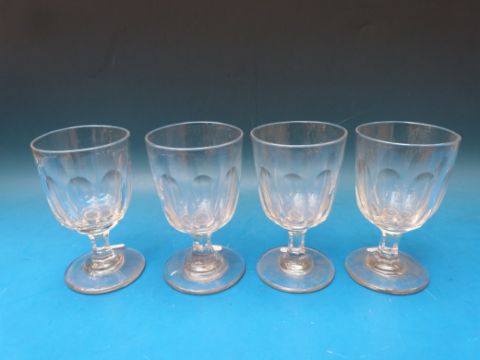 Four Georgian cut glass rummers with faceted bowls and raised on octagonal stems, 14cm tall.
