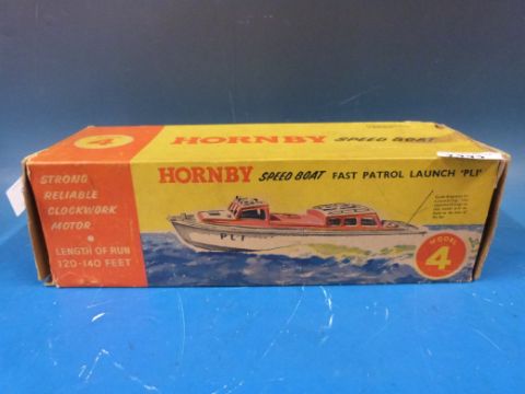 A Hornby clockwork speed boat fast patrol launch PLI, in original box