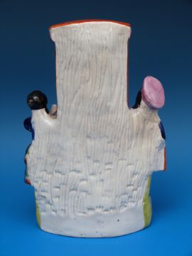 A rare 19thC Staffordshire flatback figure of a Punch and Judy show, the puppeteer's arm raised (21cm)