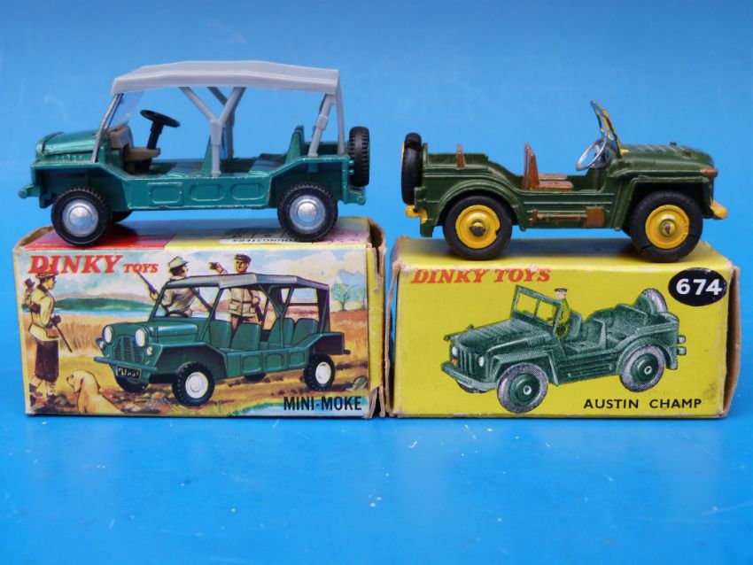 Two Dinky Toys diecast model military vehicles Austin Champ 674 and Austin Mini Moke 342 both in original boxes