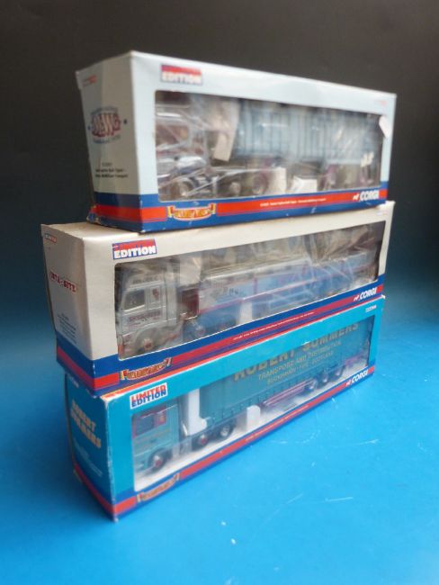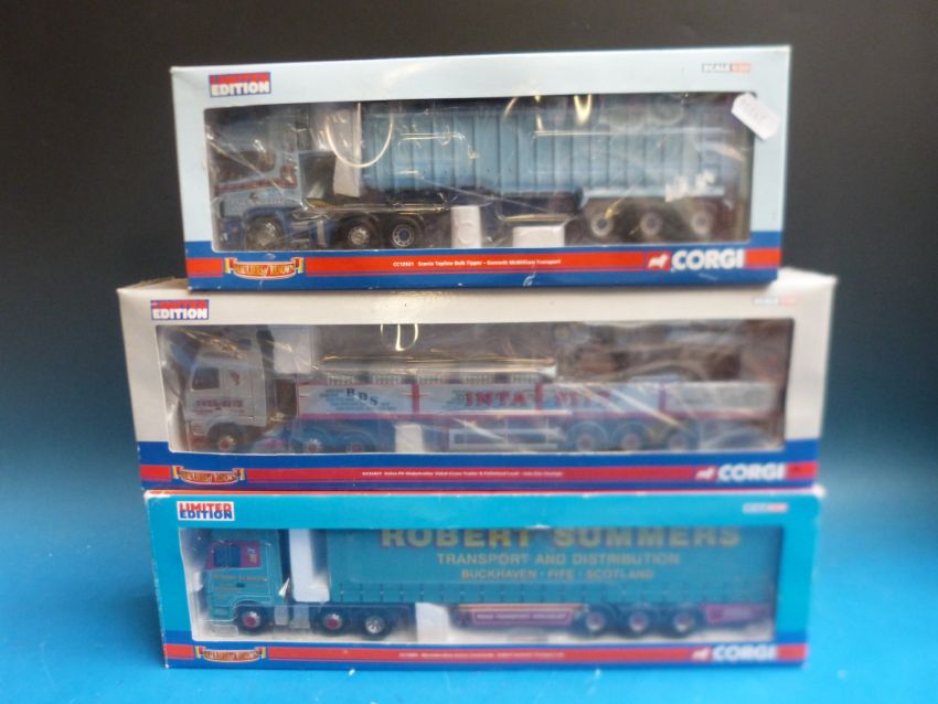 Three Corgi Hauliers of Renown 1:50 scale diecast model lorries Inta-site Haulage cc12427, Robert Summers cc13803 and Kenneth McWilliam cc12921 all in original boxes