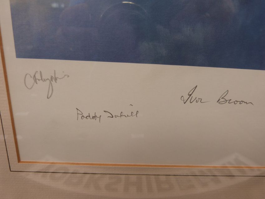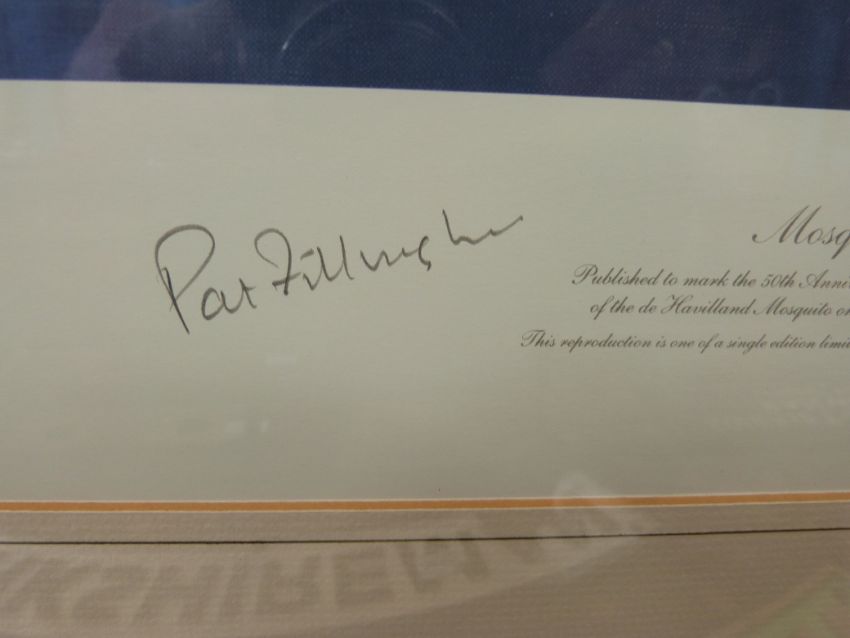 Frank Wootton limited edition colour print 'Mosquito' signed in pencil by the artist and six WWII pilots, G. Farlny Nare, Paddy Tufield, Ivor Bloom, Pat Fillingham, Eric Brown and John Cunningham, 196/850 (50cm x 63cm)