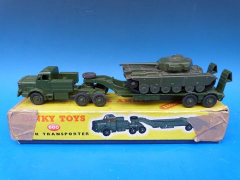 A Dinky tank transporter 660 in original box together with a Dinky Centurion tank 651