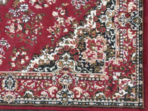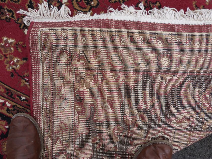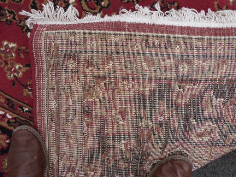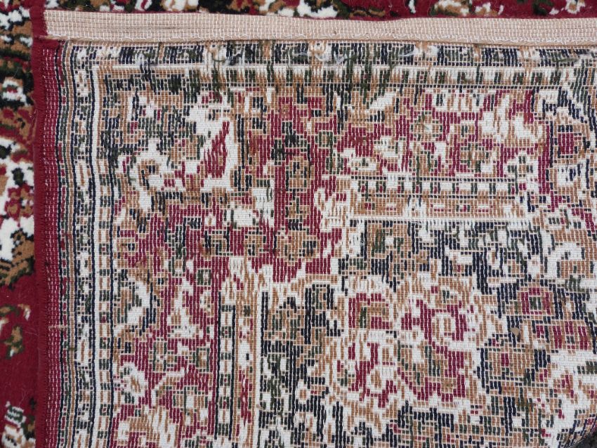 A group of seven near matching carpets and rugs on red ground (largest 281 x 201cm, smallest 108 x 58cm))