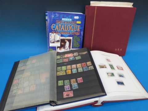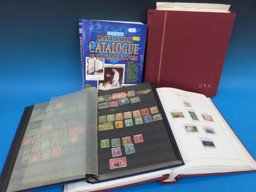Lighthouse and Schaubek albums, a stockbook of USA stamps and a Scott specialised USA catalogue
