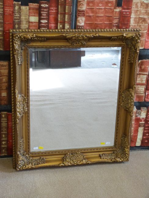 An ornate bevelled glass wall mirror (78.5cm high, 69cm wide)