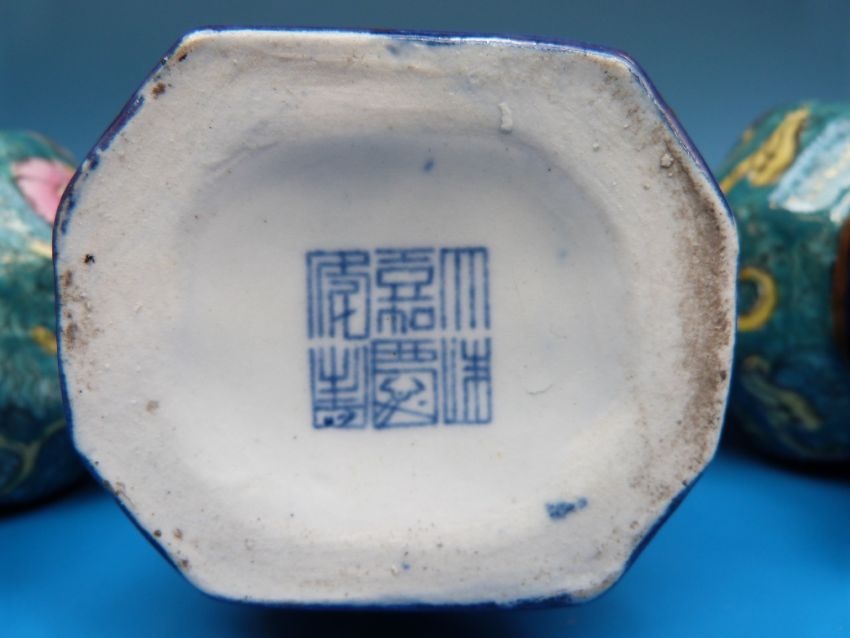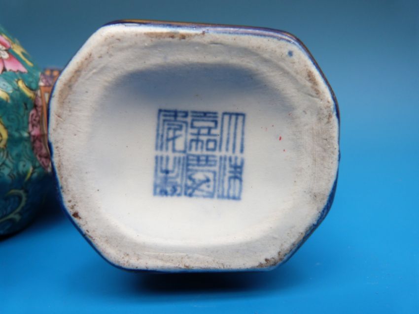 A rare 19thC Mason's trio/garniture of lidded vases with chinoiserie decoration (tallest vase 18cm)