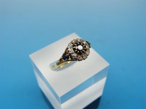 An 18ct gold ring set with sapphires and diamonds (one stone replaced)