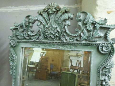 Two ornate framed mirrors with bevelled glass, silvered frames (overall size 181 x 88cm)