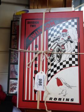 A quantity of speedway memorabilia and clothing including enamel badges, riders 'Swindon Robin' vests, jackets, books etc