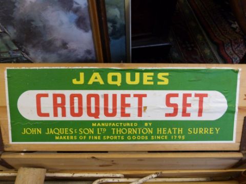 A vintage croquet set in original wooden box.