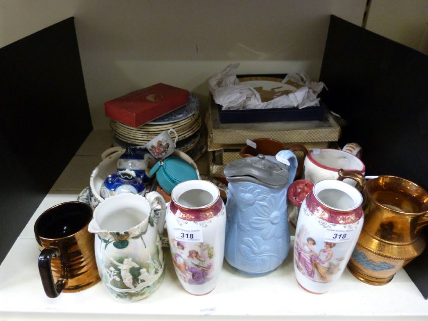 Mixed ceramics including Royal Worcester, George and the Dragon plate, Cadbury jug, blue and white plates, pair of Vienna style vases etc