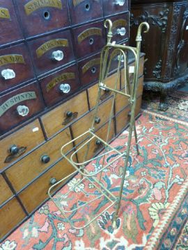 A 19thC brass three tier folding magazine rack (height 86cm)