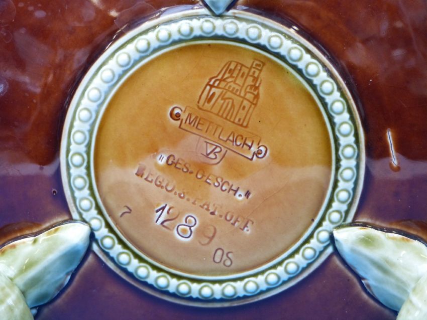 A late 19th/20thC Mettlach cylinder vase with enamelled decoration, raised on thee scrolling feet, shape No. 1289 (26.5cm)