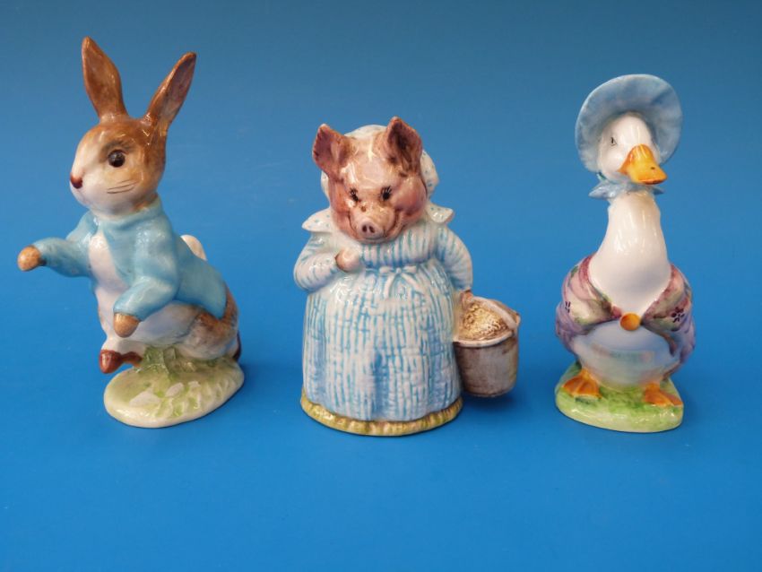 Three Beswick Beatrix Potter figures "Aunt Pettitoes", "Peter Rabbit" and "Jemima Puddleduck", all with BP2 back stamps