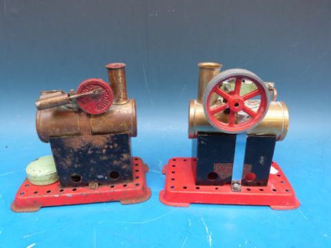 A Mamod MM1 with disc type crank and single type burner together with another example and toy hammer
