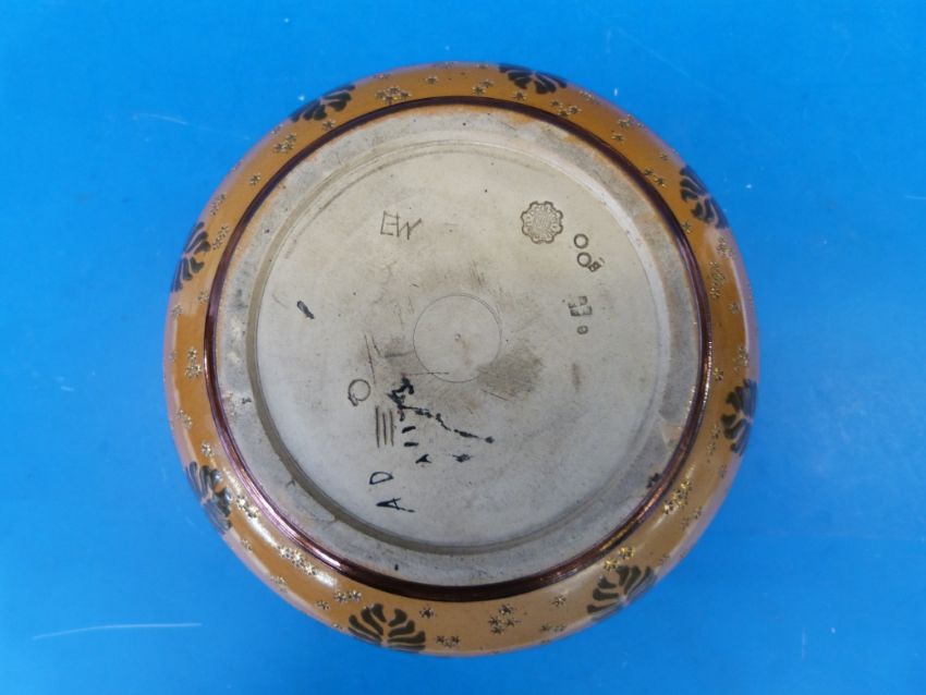 A Doulton Lambeth pierced stoneware jardiniere decorated with flowers and initialled to base EW and AD for Emily Welch and Amelia Drake.