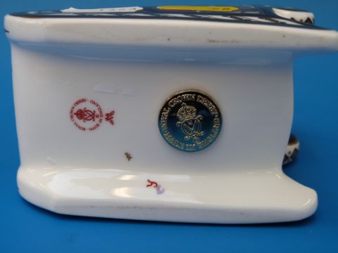 A boxed Royal Crown Derby paperweight in the form of Santa and his sleigh together with a boxed Royal Crown Derby mouse paperweight, both with gold stoppers