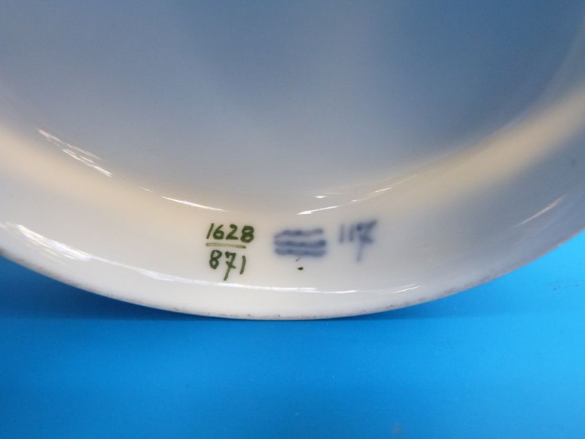 Two lidded Royal Copenhagen urn vases c1904 -1928. Each approximately 12" tall, one with magnolia design probably painted by Gerd Petersen c1923 the other with hollyhock design by Frl. Orsted