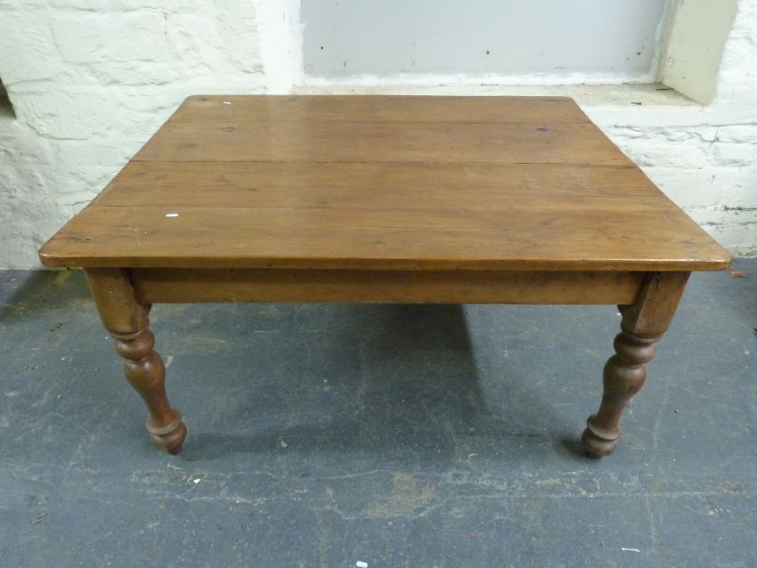 A four plank elm kitchen table (L137, W111, H71cm)