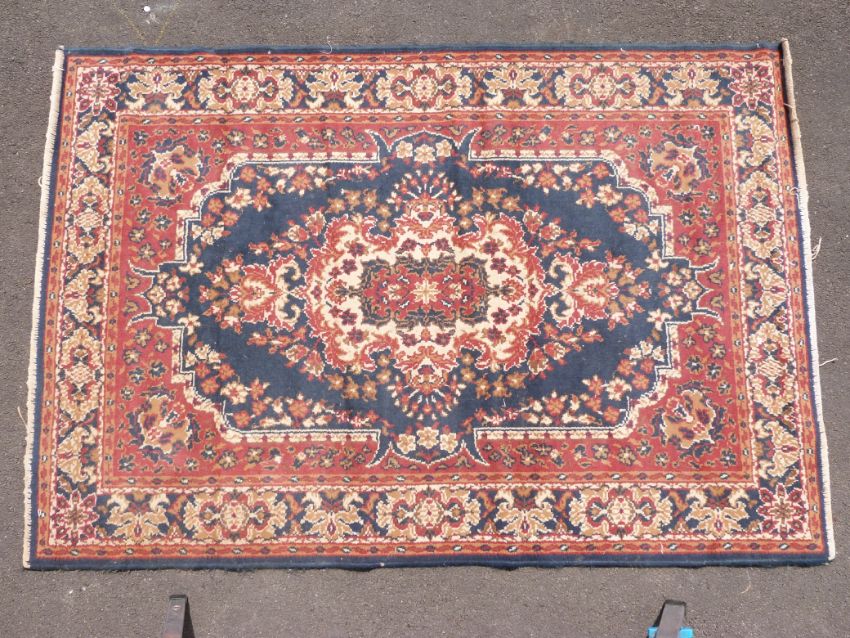 A group of five matching blue ground rugs (largest 290 x 190cm)