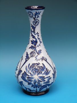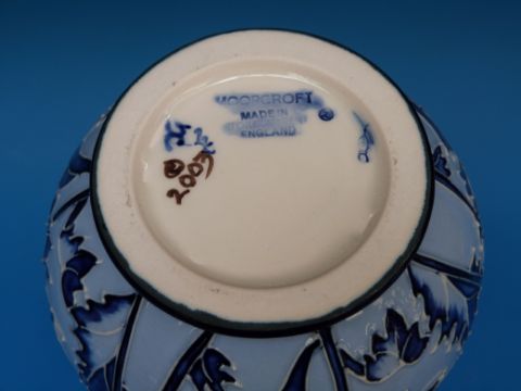 A Moorcroft blue on blue pottery vase, 23.5cm tall (boxed)