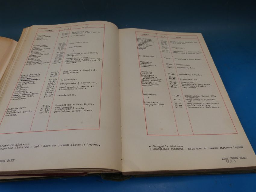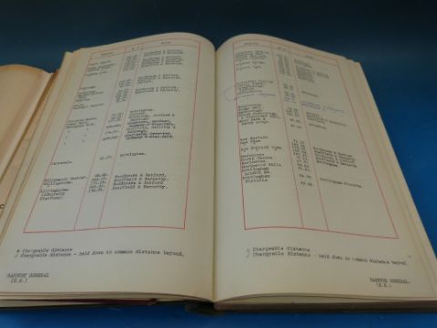 Railway distance table book 'Exchange Point Distances (provincial) A to B', including diagrams of track plans, the tables giving distances and route details, B R era together with a bound copy of the 1961/62 working passenger timetable for St.Pancras to Derby and branches, with supplements