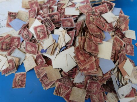 A large quantity of GB Victorian penny red stamps, mainly loose, together with a stock book and some covers