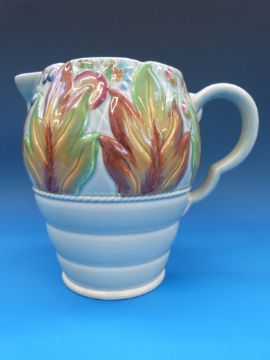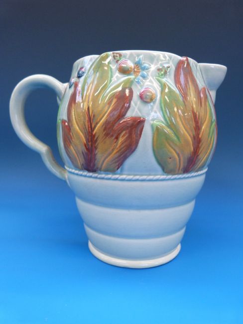 A Clarice Cliff Newport pottery relief moulded jug