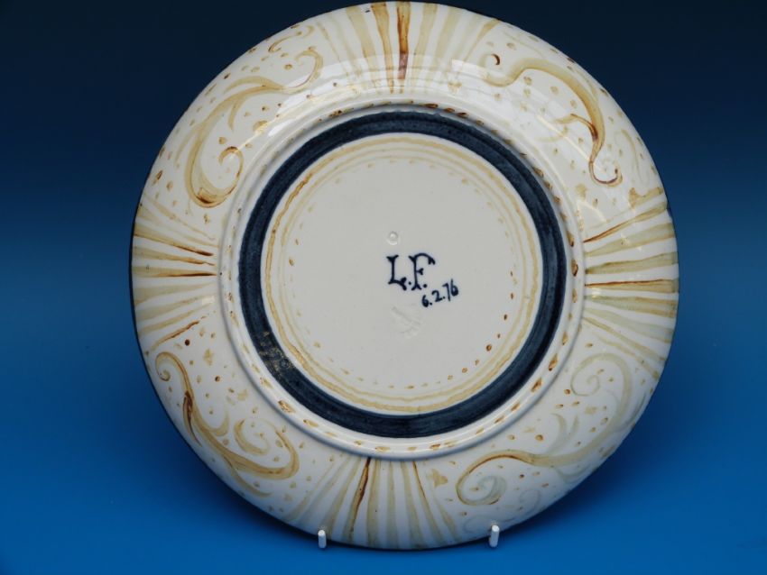 An unusual Spode Arts and Crafts plate with Papal religious subject. Impressed marks and initialled LF 6-2-76 (ex Worlock Collection)