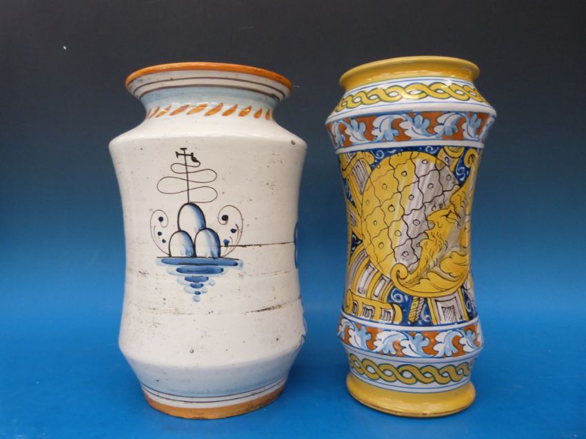 Two Italian majolica tin glazed vases (both 28cm high)