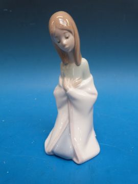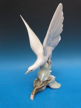 Lladro Tortola bird figure, donkey and two child figures (most boxed). Tallest 28cm
