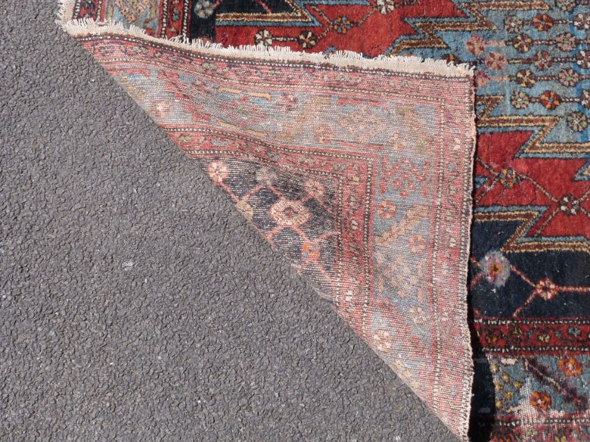 A rug with geometric design on blue ground (200cm x 121cm)